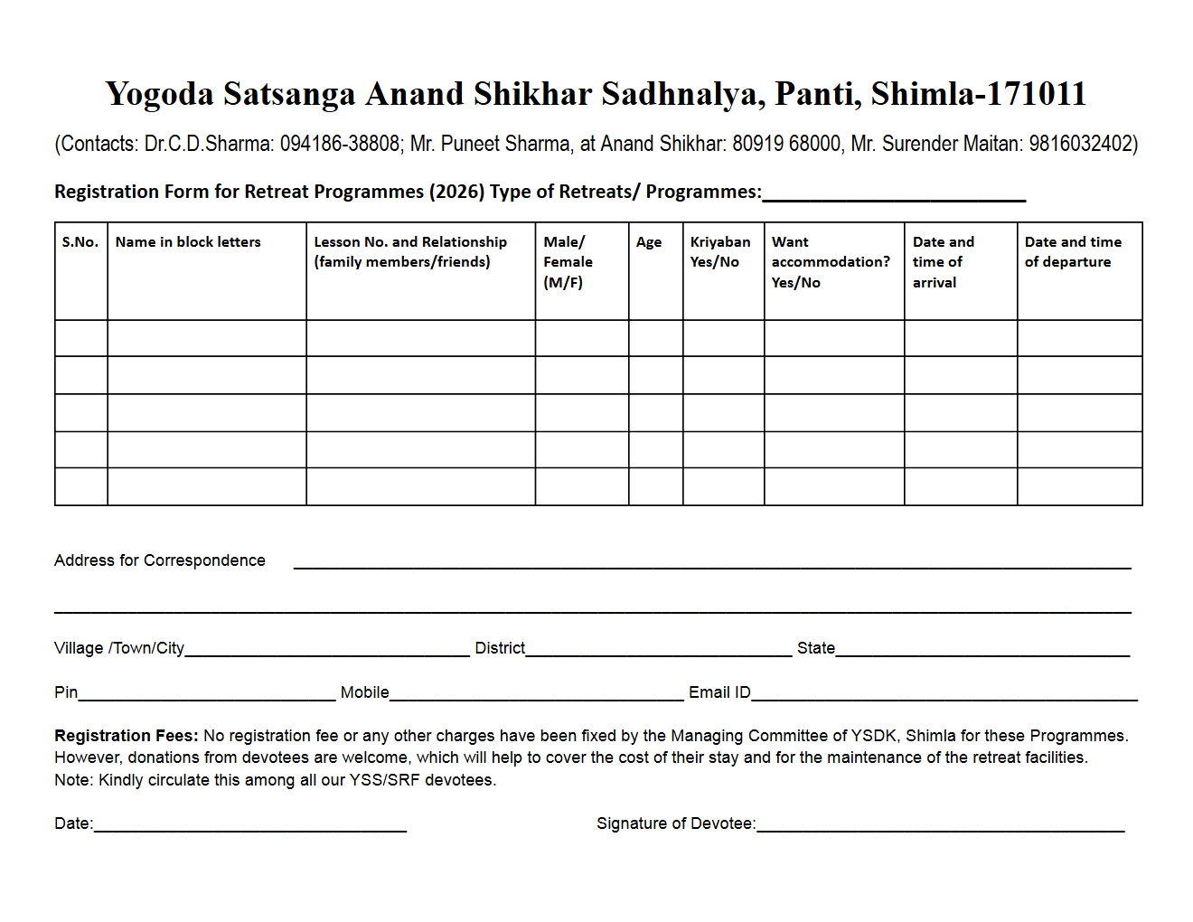 - This retreat is the most useful and conducive to help us to experience tangible progress in our sadhna…..RR Varma, Shimla, HP